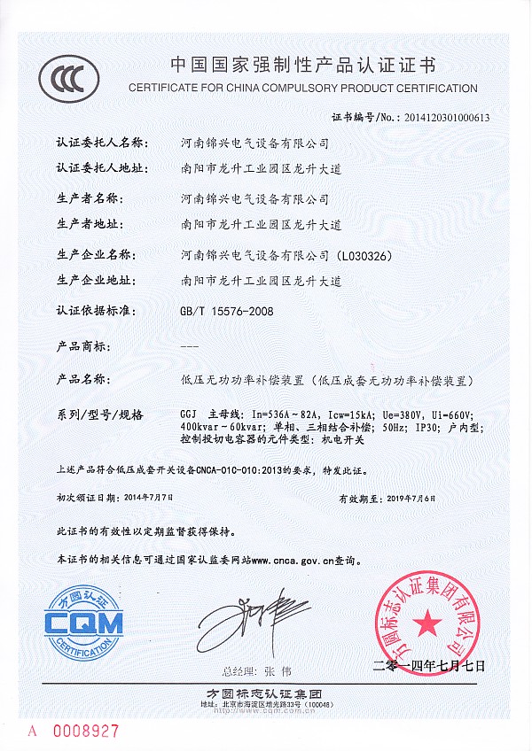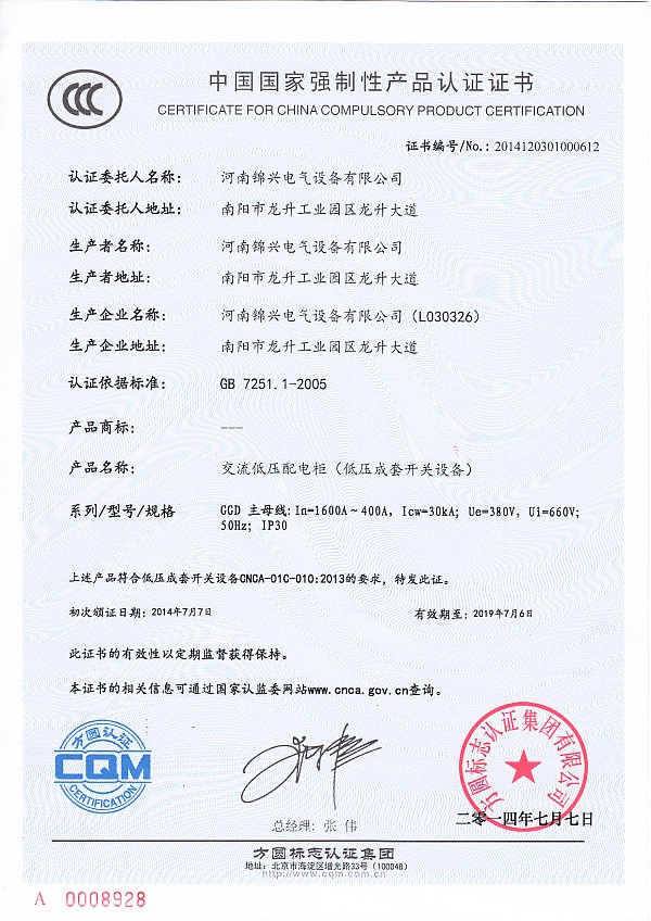 GGD低壓配電柜認證******